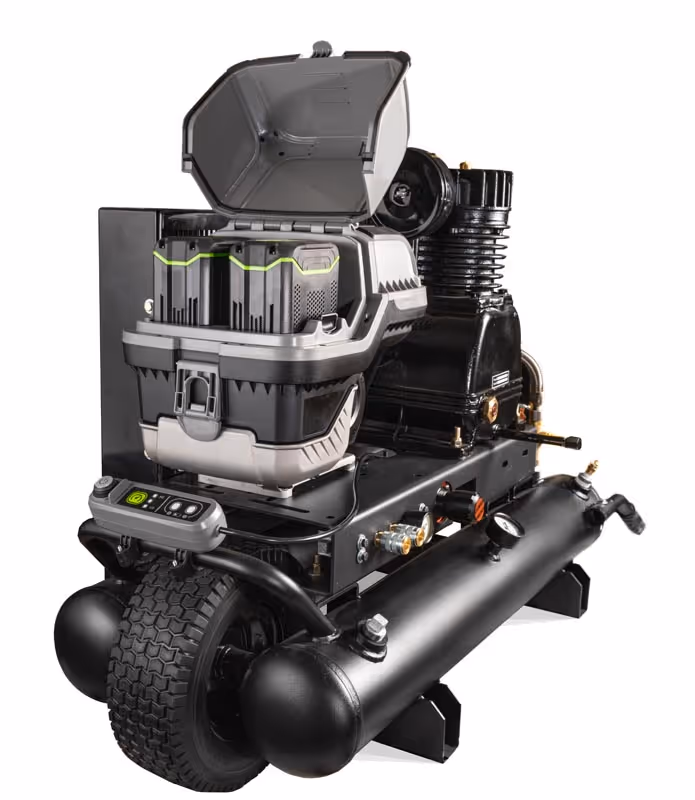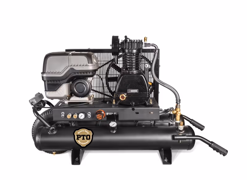 Battery powered air compressor driven by an industrial-grade 3.9 HP motor. Featuring the LH3 single-stage pump with reed valves and a solid cast iron construction. Available with a 10, 20, or 30 gallon tank. Ideal for farms and ranches, mobile applications, and construction sites without electrical power access.