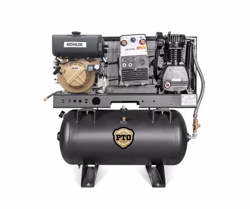 A combination compressor/generator/welder driven by an industrial-grade 10 HP Kohler diesel engine with electric start. Featuring the LH4 two-stage pump with reed valves, a 240 Amp welder, and a 5000 Watt generator with 120 and 220 volt outlets. Ideal for remote job sites, mobile applications, and locations without electrical power access.